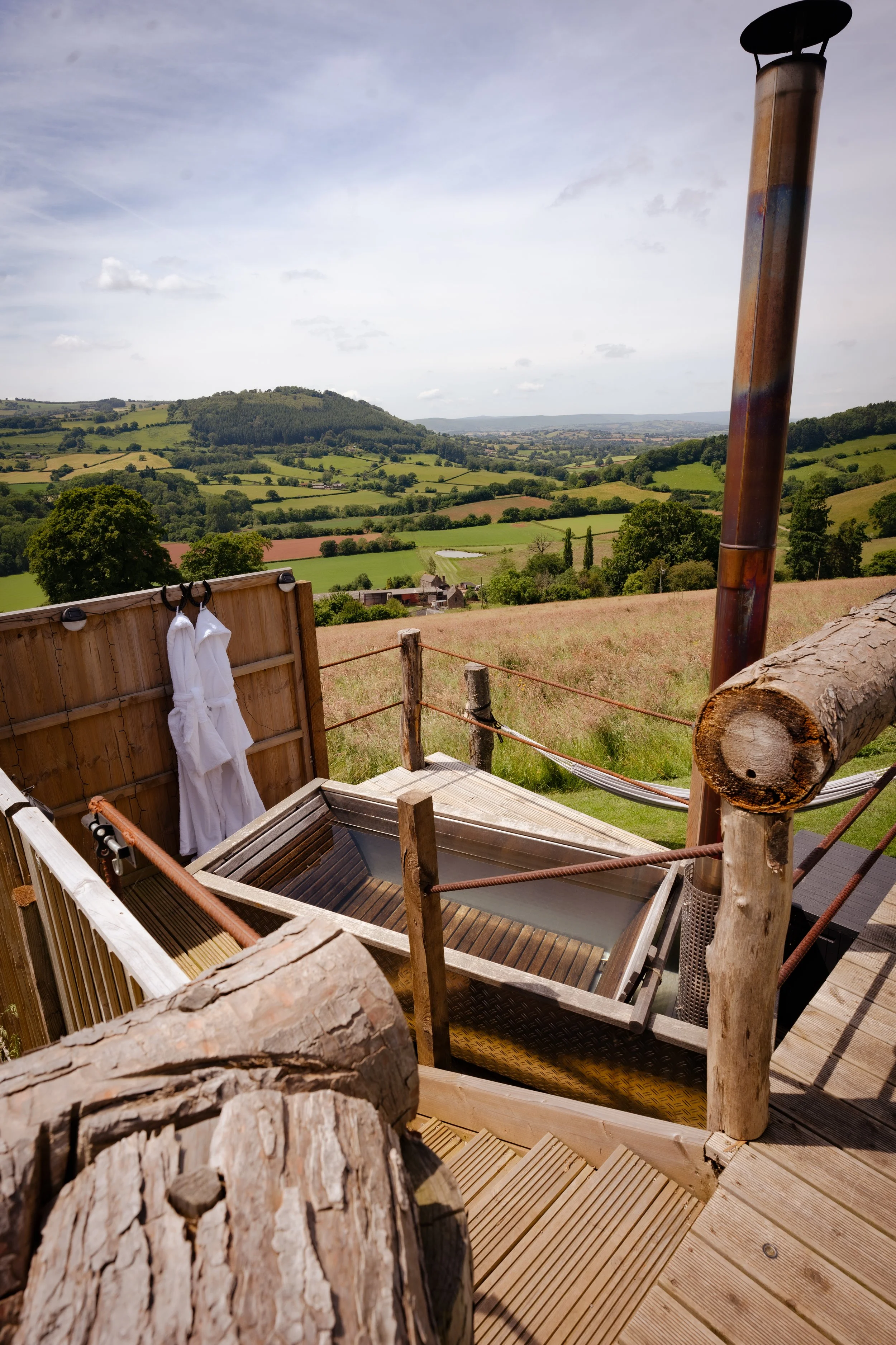 Three luxury cabins situated on the brow of the hill on a working farm over looking the Monnow Valley and over to the Black Mountains. Open all year round so you can enjoy the changes in the English seasons. Truly one of the best views in the country. Situated less than a mile outside of the village of Garway and still less than a mile from the local pub this quiet spot is the perfect place to relax and take in the local area by foot or bike if you choose.
